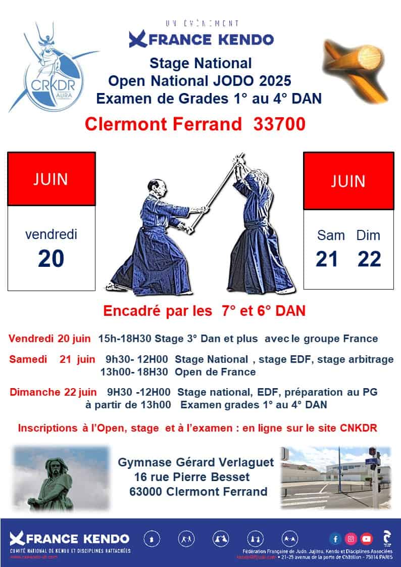 JODO – Open de France, Stage National et Examens de Grade 1er à 3ème dan et 4ème dan