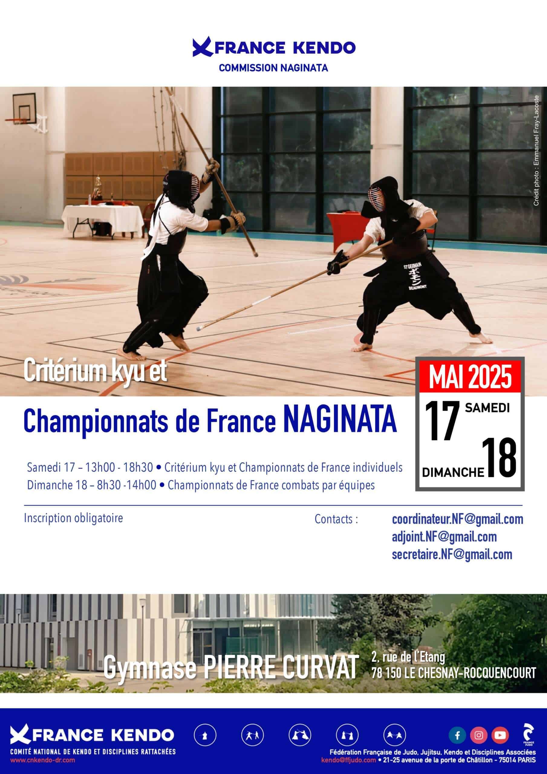 - Samedi 17 – 13h00 – 18h30 : Critérium kyu et Championnats de France individuels