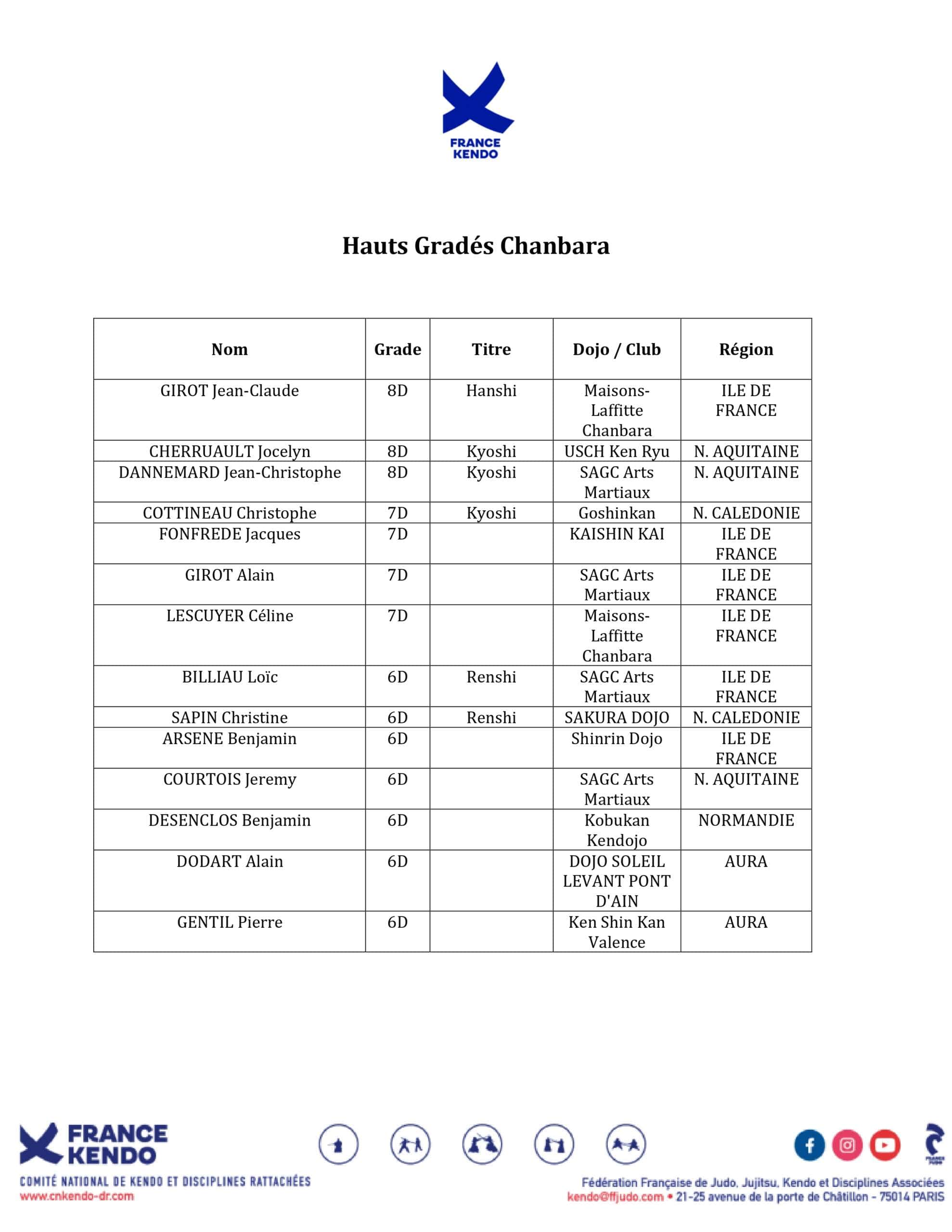 Nul ne peut participer à la délivrance des grades Kendo et DR par l’intermédiaire de quelque organisme que ce soit autre que la sous-commission des grades et se prévaloir ou avoir accepté un grade qui n’aurait pas été délivré par la commission spécialisée des Dans et grades équivalents de la FFJDA.